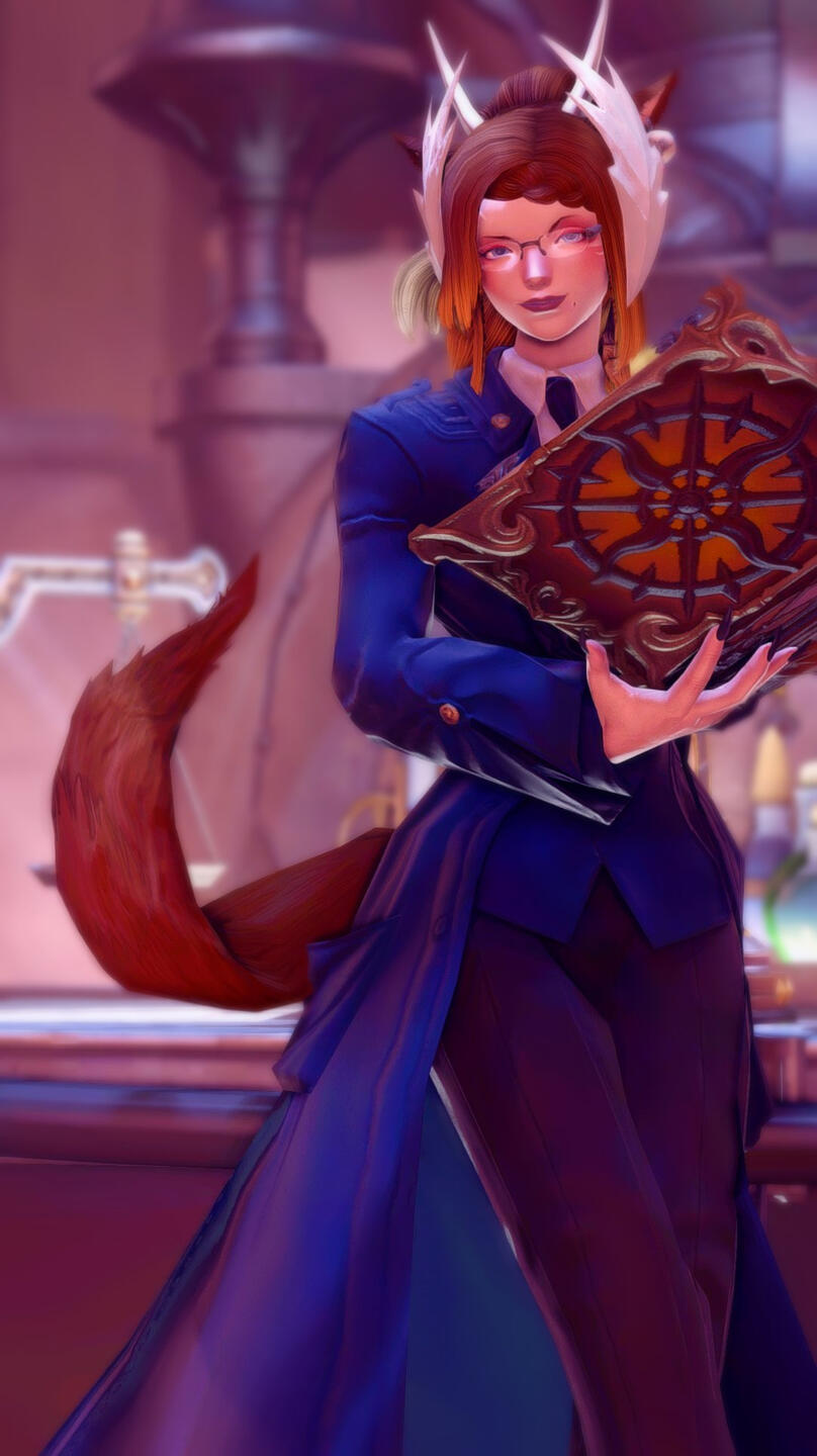 Pahko grew up in a small tribe near Gridania, with her mother caring for her most of her life, her father wasn't really a part of her life at all. She grew up pretty normally, her mother sparked an interest in magic in her as her mother was the clan primary white mage. This allowed her to become well antiquated with white magic, becoming a decently powerful mage by a young age, though nothing out of the ordinary for her clan. Her interest in white magic didn't just come from the magic itself, but the traditions of pleasing the elements for the powers, and their "punishments" to those unworthy.Pahko was assumed to take up her position as a clan healer when she was old enough, but from a young age, she knew she didn't want to stay in the village. She wanted to know more about the elementals, and the magic her clan held. Pahko left for Gridania when she was a teen to become a researcher. She worked hard under a mentor before joining a fledgling research team to start her career. She would work with the team for many years before working her way to head researcher. As she took on the responsibilites and challenges that were given to her, her interest in the elements and their methods piped her interest fully. The took on a new challenge or researching a Padjal at their own request, wanting to further the research into how they're made and their connection to the Elementals.Pahko had an obsession with the Padjal from a young age, envying their horns and they're wonderful lives, she felt she was destined to be a padjal, and that fate chose another plan for her. this admiration and borderline stalking of the race includes Kan-e, who she obsesses over, she would find any reason to go and find Kan-e and interact with her, even volunteering with the white mage guild when she could just to spend time with her. She admired everything about her, especially her beautiful horns. This child, sick with something unknown, was her chance to get what she wanted, and she wasn't going to let anything stop her. She transferred the powers of the Padjal, and taking on the powers and looks of a Padjal for herself. Her horns formed into the looks of Kan-e, the ultimate form of flattery and beauty. Her soul corrupted by what she had done. She was immediately banned and shunned, losing everything in Gridania and setting her by herself looking for new work, while struggling with a large bounty on her head and the hunt for her being the talk of the three city states. She along the lines, changed her name to Pahko, instead of her old name (redacted). She found a way to bribe some politicians in Ul'dah to let her stay and roam there, in the pretense of doing some work for them that isn't usually legal. She started working underground as a for hire alchemist and potion brewer, saving up enough money and building connections to allow herself to get back on her feet. She made friends with a man named Ozwin, part of a wealthy family who wandered at all times, who was willing to let her buy a home in his name in the Goblet. With a base of operation and some side work here and there, most of which wasn't anything she was proud of, she's currently looking for more permanent work that more justifies her talent.